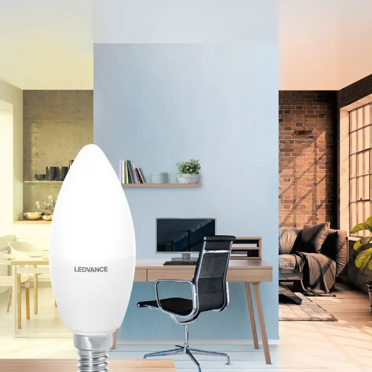 Plnospektrální LED žárovka SUN@Home má závit s menším průměrem 14 mm. Používá se pro malá svítidla, například noční lampy, kuchyňské digestoře či Číst vícedesignová svítidla. Vyzařované světlo díky unikátní technologii napodobuje svit slunečních paprsků. Plnospektrální žárovka SUN@Home E14 mění v průběhu dne teplotu barvy světla a intenzitu osvětlení stejným způsobem jako slunce. Ráno a odpoledne má pro organismus stimulační účinky, které podporují denní aktivitu. Před spaním naopak vyvolává relaxační účinky navozující kvalitnější spánek. Funkce svítidla můžete ovládat pomocí aplikace LEDVANCE SMART + WiFi.