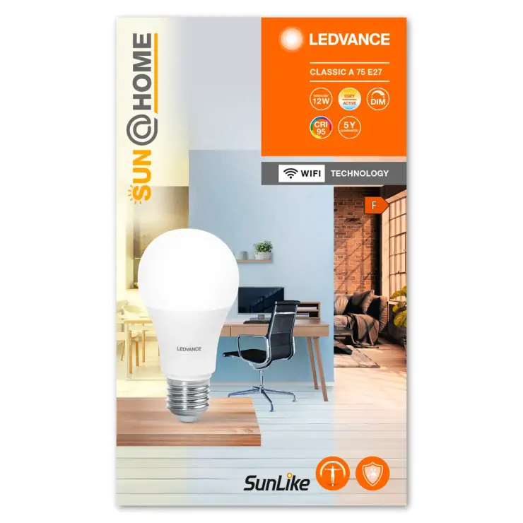 LED žárovka dokáže měnit intenzitu osvětlení (jas) a teplotu barvy světla v odlišných částech dne. Při svícení v dopoledních a odpoledních Číst vícehodinách má stimulační účinky vedoucí k vyšší produktivitě práce, lepší koncentraci a pozitivní náladě. Plnospektrální žárovka SUN@Home vyvolává tyto efekty pomocí vysoké intenzity osvětlení a studené bíle barvy světla. Ve večerních hodinách teplota přejde na teplou žlutou barvu a sníží se intenzita. Tyto vlastnosti světla dopomáhají k odpočinku před spánkem. Díky blokaci modrého světla dvě hodiny před usínáním dosáhnete kvalitnějšího spánku. Žárovka je kompatibilní s aplikací LEDVANCE SMART + WiFi, díky které lze nastavit vlastnosti světla podle vašeho denního režimu.