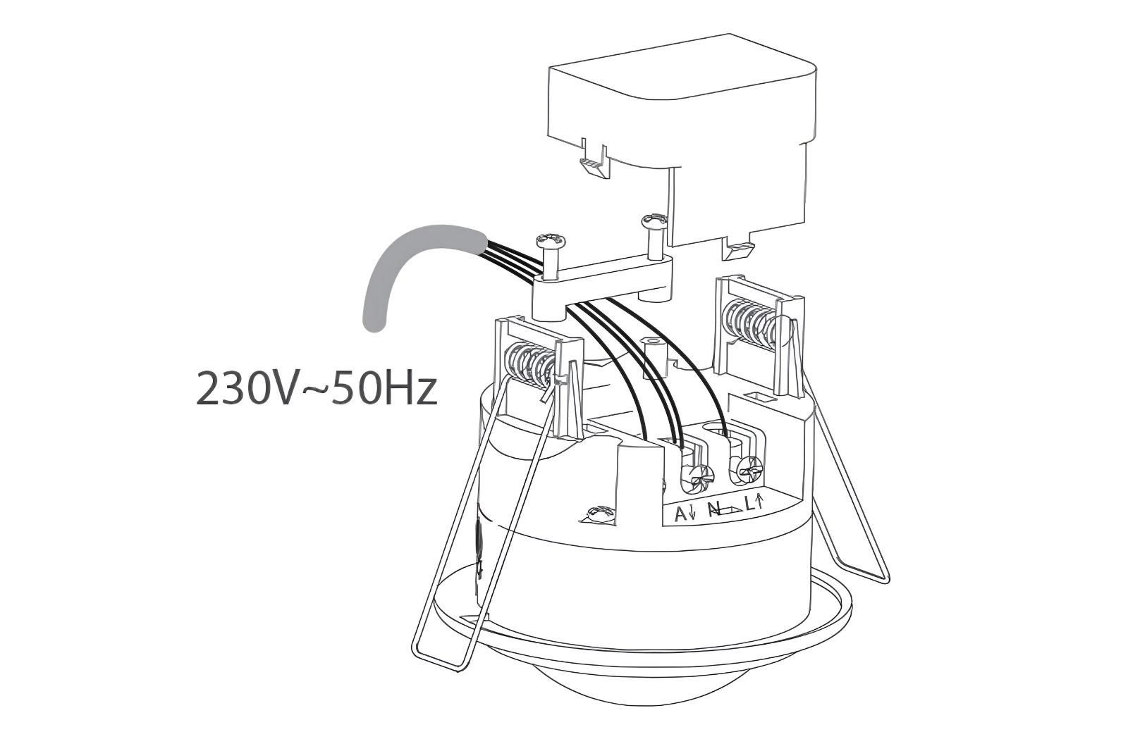 - Před samotnou instalací odpojte přívod elektrické energie. Poté rozdělejte čidlo a podle schématu na obrázku níže jej připojte k vodičům.